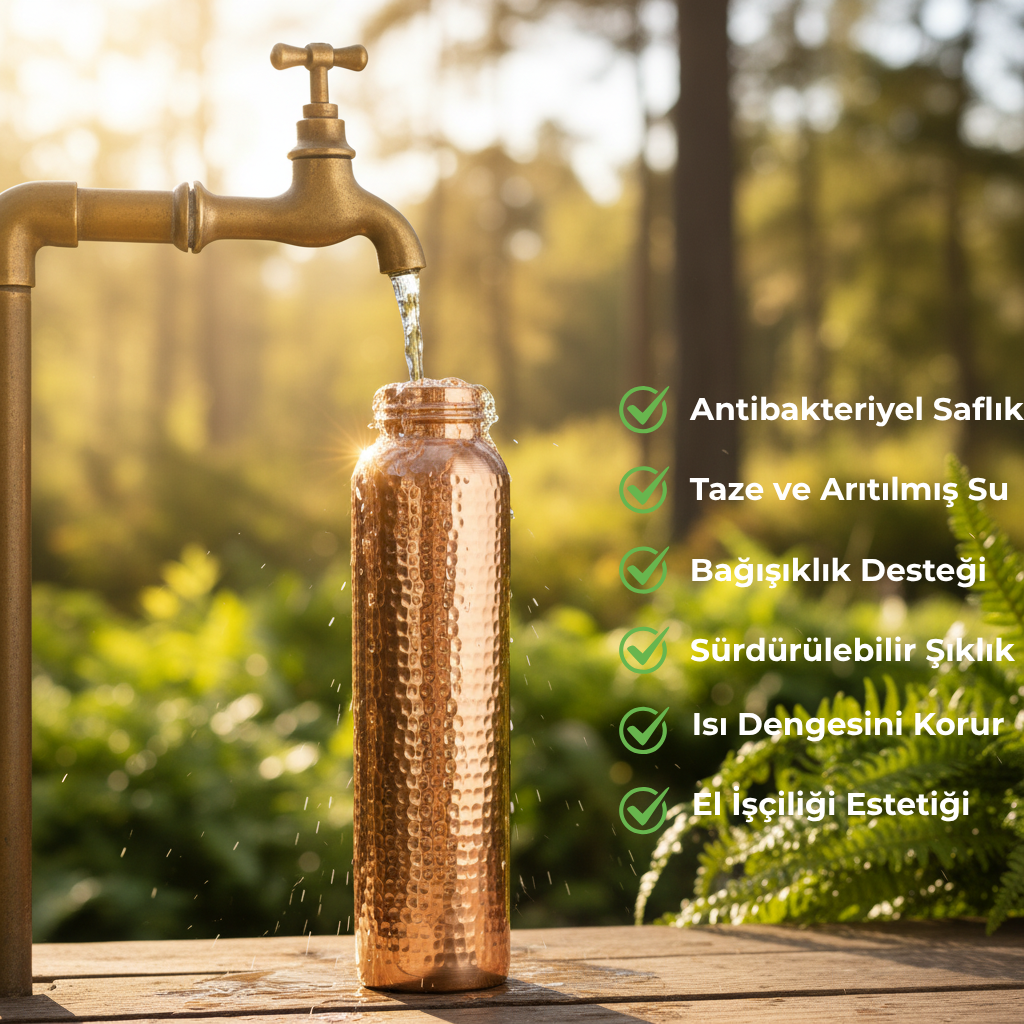 Kimyasalsız, mikroplastiksiz ve tamamen doğal bir içim deneyimi. Sağlığınızı koruyan bakır şişe ile tanışın.