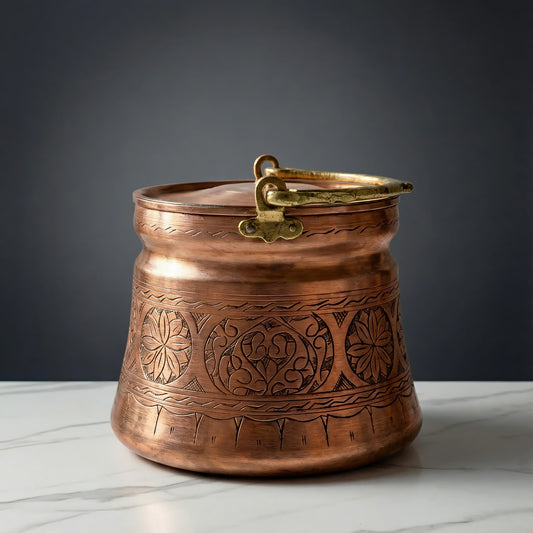 İNDİRİM 35%İşlemeli Bakır Pilav Tenceresi
