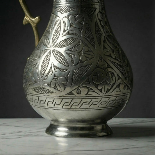 İNDİRİM 22%Ağır İşlemeli Bakır Sürahi Gümüş Renk (2 Litre)