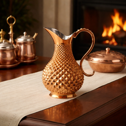 Özel Tasarım El İşçiliği Piramit Desen Bakır Sürahi (2 Litre)