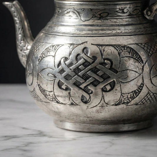 İNDİRİM 26%Özel İşlemeli Bakır Çaydanlık Gümüş Renk