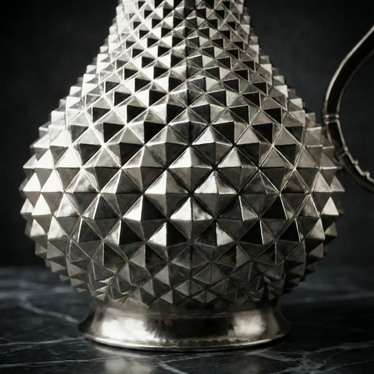 Özel Tasarım El İşçiliği Piramit Desen Bakır Sürahi (Gümüş Renk) 2 Litre