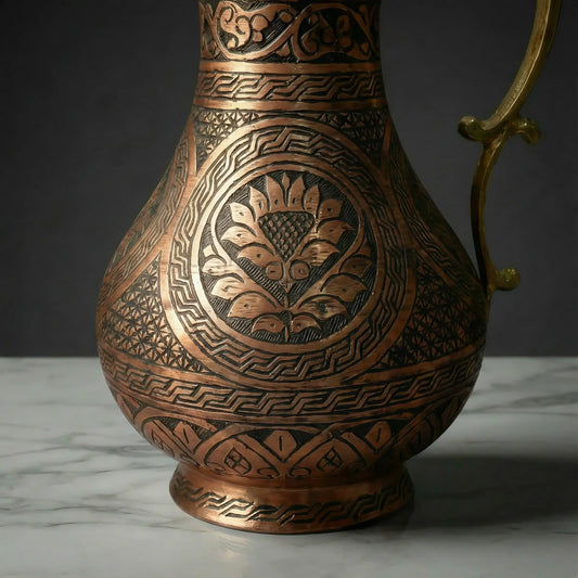 İNDİRİM 22%Ağır İşlemeli Bakır Sürahi (2 Litre)